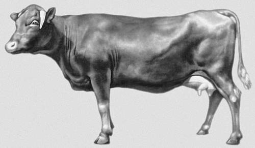 Корова красной горбатовской породы.