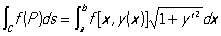 где С — заданная кривая, ds — дифференциал её дуги, a f (P) — функция точки на кривой, и представляет собой предел соответствующих интегральных сумм (см. Интеграл). В случае плоской кривой С, заданной уравнением у = у (х), К. и. 1-го типа сводится к обыкновенному интегралу по формуле: