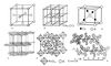 Атомная структура К. Внешняя форма К., принадлежность его к тому или иному классу и сингоний определяются его кристаллической решёткой с характерной для неё симметрической операцией бесконечно повторяющихся переносов (трансляций). Вследствие этого, кроме упоминавшихся выше операции симметрии (поворотов вокруг осей симметрии, плоскостей, центра), в структуре К. возможны операции симметрии с бесконечным переносом, например винтовые оси симметрии, плоскости скользящего отражения и т. п. То или иное определённое их сочетание есть пространственная (фёдоровская) группа симметрии структуры кристалла. Всего существует 230 фёдоровских групп, распределённых среди 32 классов симметрии К.