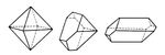Рис. 5. а — некоторые простые формы кристаллов; б — принцип образования комбинаций простых форм; в — реально наблюдаемые огранки некоторых кристаллов.