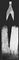 Рис. 2в. Фотография разрушения, произведённого в стальной мишени действием заряда с кумулятивной выемкой (с металлической облицовкой). Поперечное сечение применяемого заряда показано над мишенью.