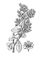 Лавсония неколючая, ветка с цветками и плодами; справа — цветок.