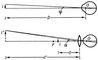 в зависимости от конструкции Л. G может иметь значение от 2 до 40—50. Простейшие Л. представляют собой собирающие линзы; их увеличение обычно мало (~2—3). При средних увеличениях (4—10) применяются двух- и трёхлинзовые системы (рис. 3). Поле зрения в пространстве изображений у Л. с малым и средним G не превышает 15—20°.