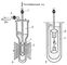Рис. 2. Схемы установок для магнитного охлаждения: а — одноступенчатого (N, S — полюсы электромагнита), б — двухступенчатого.