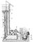 Рис. 3. Каталонский горн с водяной воздуходувной трубой: 1 — клапан; 2 — отверстия для воздуха; 3 — труба; 4 — слив воды; 5 — дутьё; 6 — фурма; 7 — руда и древесный уголь; 8 — крица; 9 — шлак; 10 — выпуск шлака.