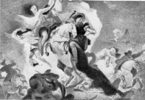 Ф. А. Маульберч. «Победа Сантьяго де Компостела над сарацинами». Эскиз плафона. 1765. Музей барокко. Вена.