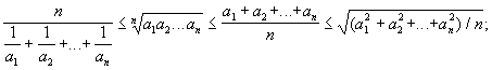 2) Неравенство для средних. Наиболее известны Н., связывающие гармонические, геометрические, арифметические и квадратические средние: