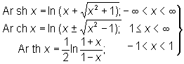 Обратные гиперболические функции, функции, обратные по отношению к гиперболическим функциям sh х, ch х, th х; они выражаются формулами