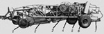 Навесной транспортёр (рис. 4) предназначен для сплошного сбора капусты, кабачков, тыквы и др. бахчевых культур. Его агрегатируют с тракторами класса 1,4 т. Состоит из центральной и двух боковых секций. Ленты секций приводятся в движение от вала отбора мощности трактора. Рабочие идут за агрегатом, срезают кочаны капусты или плоды бахчевых культур и кладут их на транспортёрные ленты. Транспортёром можно укладывать кочаны и плоды в валок или сбрасывать в кузов транспортного средства. Производительность 0,18 га/ч.