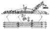 Лукоуборочная машина (рис. 2), выпускаемая в СССР, предназначена для уборки лука-репки двухфазным способом. Сначала ею подкапывают лук с рядков при однострочной схеме посева 45 см или 4 рядков при схеме 20 + 50 см и укладывают за два прохода вместе с пером в валок для просушки. Когда перо высохнет, валок подбирают той же машиной (при этом от лука отсеивается почва и часть пера) и грузят в кузов рядом движущегося транспортного средства. Машину агрегатируют с трактором класса 1,4 т. Рабочие органы сё приводятся в действие от вала отбора мощности трактора. Производительность на подкапывании и укладке в валок от 0,4 до 0,8 га/ч, а на подборе из валка — от 0,8 до 1,6 га/ч.