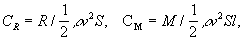 и характерной площади S, а А. к. момента Cm — как отношение аэродинамич. момента М к rv2/2, S и к характерной длине l , т. е.