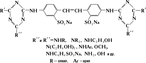 Большая часть О. о., выпускаемых для целлюлозных материалов, принадлежит к стильбен-триазиновым производным: