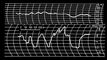 Регистрограмма, полученная при аэрогеофизической (радиометрической) съёмке. На верхней полосе ленты — запись высоты съёмки с вертолёта, на нижней — запись интенсивности гамма-излучения радиоактивных элементов (в данном случае щелочных гранитов).