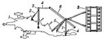 Схема пахотного комбинированного агрегата: 1 — пятикорпусный плуг; 2 и 5 — растяжки сцепки; 3 и 7 — брусья сцепки; 4 — тяга для присоединения волокуши к сцепке; 6 — волокуша; 8 — каток-комкодробитель.