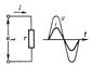 Рис. 3. Схема и графики напряжения u и тока i в цепи, содержащей только активное сопротивление r.