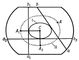 Рис. 1. ab, a1b1, a2b2 — плоскости возможной грузовой ватерлинии; A, A1, A2 — центры водоизмещения для объёмов, отсекаемых плоскостями ab, a1b1, a2b2; I — поверхность грузовых ватерлиний; II — поверхность центров водоизмещения.