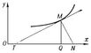 Подкасательная и поднормаль (математическое), направленные отрезки QT и QN, являющиеся проекциями на ось Ox отрезков касательной МТ и нормали MN к некоторой кривой в её точке М (см. рис.). Если кривая есть график функции y = f (x), то значения величин П. и п. равны соответственно: