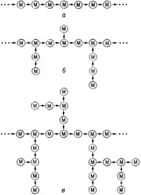 П., в отличие от др. классов биополимеров, могут существовать как в виде линейных (а), так и разветвленных (б, в) структур (см. рис.).
