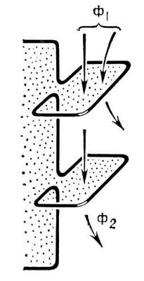 — поверхность, ограничиваемая контуром, для которого определяется П. Сказанное применимо и к многовитковой катушке индуктивности, последовательные витки которой образуют один контур (рис.); при этом общий поток, или П.,