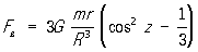 Вертикальная составляющая приливной силы (на единицу массы) Fв изменяет силу тяжести на величину