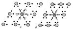 Рис. 2. а — плоская модель кристалла, обладающего центром симметрии; б — тот же кристалл, подвергнутый сжатию.