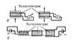 Рис. 3. а — прямой пьезоэлектрический эффект; сжатие или растяжение пьезоэлектрической пластины приводит к возникновению разности потенциалов; б — обратный пьезоэлектрический эффект; в зависимости от знака разности потенциалов, приложенной к пьезоэлектрической пластинке, она сжимается или растягивается.