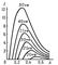 Рис.1. Распределение интенсивности I тормозного излучения W по длинам волн l при различных напряжениях V на рентгеновской трубке.