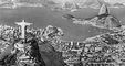 Бразилия. Рио-де-Жанейро. Общий вид города. Справа — гора Пан-ди-Асукар («Сахарная голова»). Слева, на переднем плане — холм Корковаду со статуей Христа (1931, французский скульптор П. Ландовски).