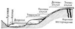 Россыпи, россыпные месторождения, скопления на земной поверхности мелких обломков горных пород или минералов, возникающих вследствие разрушения коренных месторождений полезных ископаемых или горных пород, которые содержат включения ценных минералов в размерах, допускающих экономически выгодное их извлечение. Р. образуют только устойчивые к процессам переноса и выветривания минералы (алмаз, золото, платина, касситерит, монацит, рубин, сапфир, ильменит, циркон, янтарь и др.). Р. возникают на всём пути распространения рыхлого материала (щебня, галечника, песка) от места нахождения коренного источника до морских побережий, куда в конечном итоге сносятся продукты разрушения континентов. Выделяется ряд последовательных стадий формирования Р.: образование Р. на месте коренного источника (элювиальные Р.), на склонах возвышенностей и у их подножия (делювиальные, солифлюкционные, коллювиальные, оползневые, пролювиальные Р.), в речных долинах (аллювиальные Р., Р. надводных дельт и широких аллювиальных равнин), на морских и озёрных побережьях (Р. подводных дельт, прибрежно-морские и шельфовые Р., озёрные Р.). Вне этих стадий в областях оледенений и аридного климата возникают ледниковые Р. и эоловые Р. Последовательность образования отдельных генетических типов Р. не всегда выдерживается, иногда процесс заканчивается на одной из ранних стадий. Р., приуроченные к различным геоморфологическим элементам речных долин, см. на рис.