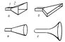 Рупорная антенна, антенна, состоящая из металлического расширяющегося раструба (рупора) и подсоединённого к нему радиоволновода. Р. а. применяют для направленного излучения и приёма радиоволн СВЧ диапазона — в качестве облучателей линзовых и зеркальных антенн, а также в качестве самостоятельных антенн на спутниках связи, в устройствах измерительной техники и т.д. Диаграмма излучения Р. а. зависит от характера распределения поля в раскрыве (наибольшем сечении) рупора, которое, в свою очередь, определяется формой внутренней и внешней поверхностей рупора и его геометрическими размерами. По форме рупора различают пирамидальные (рис., а), секториальные (рис., б) и конические (рис., в) Р. а., а также их модификации, например Р. а. с образующей поверхности рупора в виде ломаной линии или плавной кривой, с гладкой или гофрированной внутренней поверхностью и др. Модификации применяют для улучшения тех или иных электрических характеристик Р. а., например для получения осесимметричной диаграммы излучения, диаграммы излучения с низким уровнем мощности боковых лепестков и т.д. В некоторых случаях с целью коррекции направленных свойств Р. а. в её раскрыве помещают замедляющие или ускоряющие линзы (см. Линзовая антенна). Для лучшего согласования Р. а. с радиоволноводом и со свободным пространством в них иногда предусматривают согласующие секции и подстроечные элементы, а рупор выполняют с параболической образующей поверхности (рис., г).