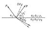 Рис. 2. Отражение и преломление продольных волн (Р) на границе раздела.