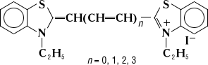 Сенсибилизирующие красители, сенсибилизаторы оптические, органические красители, обладающие свойством при адсорбции на поверхности кристаллов галогенсеребряных солей фотографических эмульсий придавать им чувствительность к лучам зелено-жёлтой, оранжево-красной или инфракрасной зон спектра. Несенсибилизированный галогенид серебра нечувствителен к этим лучам. Для строения С. к., большинство которых относится к полиметиновым красителям, характерно содержание в их молекулах гетероциклических ядер и сопряжённой полиметиновой цепочки. От химической природы гетероциклических ядер и длины полиметиновой цепочки зависит область спектрального поглощения и сенсибилизации красителя, а также эффективность сенсибилизирующего действия (см. Сенсибилизация оптическая).