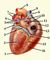 Сердце, вид спереди: 1 — верхушка сердца; 2 — правый желудочек; 3 — правая венечная артерия; 4 — правое ушко; 5 — перикард (отрезан); 6 — верхняя полая вена; 7 — аорта; 8 — плечеголовной ствол; 9 — левая общая сонная артерия; 10 — левая подключичная артерия; 11 — лёгочный ствол; 12 — левое ушко; 13 — передняя межжелудочковая ветвь левой венечной артерии; 14 — большая вена сердца; 15 — левый желудочек.