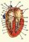 Рис. 1. Проекция сердца, створок и крупных сосудов на переднюю стенку грудной клетки (полусхематично): 1 — трахея; 2 — правая общая сонная артерия; 3 — плечеголовной ствол; 4 — подключичная артерия; 5 — подключичная вена; 6 — отверстие аорты (полулунные клапаны аорты); 7 — правое предсердно-желудочковое отверстие (трёхстворчатый клапан); 8 — наружная сонная артерия; 9 — внутренняя ярёмная вена; 10 — щитовидная железа; 11 — левая плечеголовная вена; 12 — дуга аорты; 13 — лёгочный ствол; 14 — бронхи; 15 — отверстие лёгочного ствола (клапан лёгочной артерии); 16 — левое предсердно-желудочковое отверстие (митральный клапан); 17 — верхушка сердца.