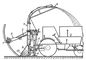 Технологическая схема силосопогрузчика: 1 — фрез-барабан; 2 — отражающий щиток; 3 — стрела; 4 — выгрузная труба; 5 — отражающие козырек; 6 — гидроцилиндр; 7 — шарнирная передача; 8 — нижняя рама; 9 — ротор швырялки; 10 — шнек приёмного ковша.