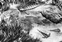 Характерные представители фауны силура на дне моря — членистоногие: Eurypterus (маленькие экземпляры внизу) и Pterygotus , достигающие 2 м в длину (вверху).
