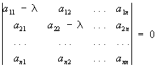 С. з. матрицы  (i, k = 1, 2,..., n) называют С. з. соответствующего ей линейного преобразования п-мерного комплексного пространства. Их можно определить также как корни определителя матрицы А — lЕ (где Е — единичная матрица), т. е. корни уравнения