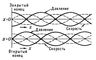 Стоячие волны, волны, возникающие вследствие интерференции волн, распространяющихся во взаимно противоположных направлениях. Практически С. в. возникают при отражениях волн от преград и неоднородностей в результате наложения отражённой волны на прямую. Различные участки С. в. колеблются в одной и той же фазе, но с различной амплитудой (рис.). В С. в., в отличие от бегущей, не происходит течения энергии. Такие волны возникают, например, в упругой системе — стержне или столбе воздуха, находящегося внутри трубы, закрытой с одного конца, при колебаниях поршня в трубе. Бегущие волны отражаются от границ системы, и в результате наложения падающих и отражённых волн в системе устанавливаются С. в. При этом по длине воздушного столба образуются т. н. узлы смещений (скоростей) — плоскости, перпендикулярные к оси столба, на которых смещения частиц воздуха отсутствуют, а амплитуды давлений максимальны, и пучности смещений — плоскости, на которых смещения максимальны, а давления равны нулю. Узлы и пучности смещений располагаются в трубе на расстояниях четверти длины волны, причём у твёрдой стенки образуются всегда узел смещений и пучность давлений. Подобная же картина наблюдается, если убрать твёрдую стенку в конце трубы, но тогда пучность скорости и узел давлений находятся на плоскости отверстия (приблизительно). Во всяком объёме, имеющем определённые границы и источник звука, образуются С. в., но более сложной структуры.