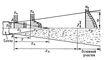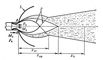 Качественно аналогична, хотя и более сложна, сверхзвуковая турбулентная нерасчётная С.. Сюда относятся С., вытекающие из сверхзвуковых сопел реактивных и ракетных двигателей, газовых и паровых турбин и т. п. Начальный газодинамический участок нерасчётной сверхзвуковой С. (первая «бочка», рис. 2) х £ хнг определяется как расстояние от среза сопла до пересечения ударных волн 2 с границей С. Геометрические размеры и структура этого участка зависят от нерасчётности С. n = pa /рн (где ра — давление в С. на срезе сопла, рн — давление в окружающей среде), чисел Маха на срезе сопла Ma и в окружающей среде Мн и физических характеристик газа С. и внешней среды. Возникающий на границе С. слой вязкого перемешивания достигает оси С. на расстоянии хнв. Далее после переходного участка хп, в котором затухают волны давления и устанавливаются автомодельные профили скорости, температуры и концентрации, С. становится изобарической. В случае сверхзвукового течения в спутном потоке (Мн > 1) перед С. образуется ударная волна 1. Рассмотренные схемы С. отличаются от действительного течения, которое значительно сложнее, однако на их основе удаётся создать методики расчёта, позволяющие с достаточной точностью определить поля скоростей, температуры и концентрации в С. и окружающей среде. Решение этой задачи необходимо для определения количества вещества, захватываемого (эжектируемого) С. из внешней среды, расчётов силового и теплового взаимодействия С. с поверхностью, расположенной на заданном расстоянии от среза сопла, излучения С. и для ряда др. задач.