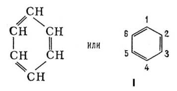 ). Молекула Б. имеет ось симметрии шестого порядка; для Б. как ароматического соединения характерно наличие секстета p-электронов, образующих единую замкнутую устойчивую электронную систему. Однако до сих пор нет общепринятой формулы, отражающей его строение; часто используют формулу II.