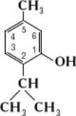 Тимол, 2-изопропил-5-метилфенол, бесцветные кристаллы со специфическим запахом и жгучим вкусом, растворимые в органических растворителях, нерастворимые в воде; tпл 51,5 °С, tкип 232,9 °С.