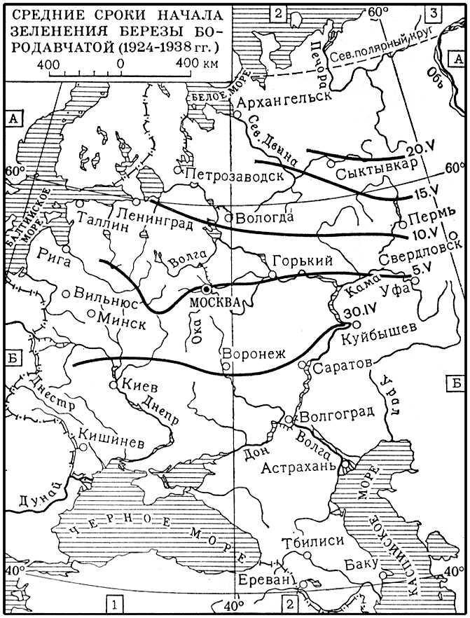 Средние сроки начала зеленения берёзы бородавчатой (1924—1938 гг.)