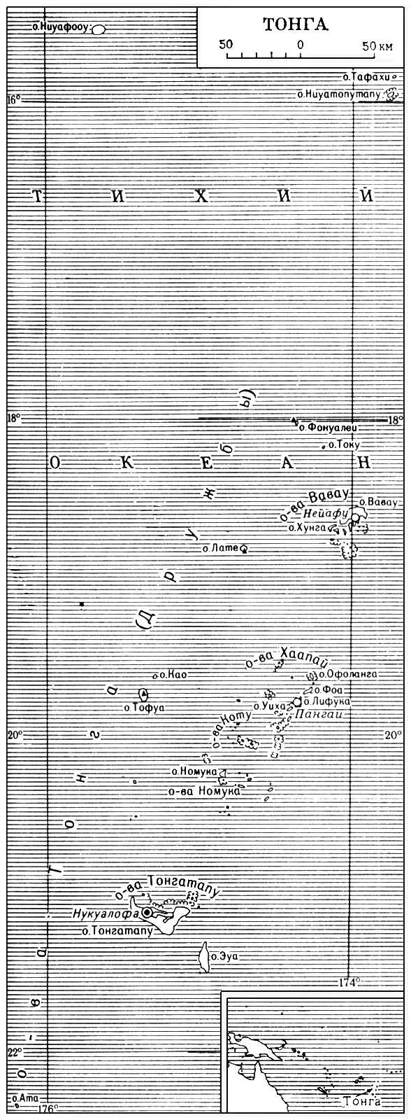 Тонга (Tonga), Королевство Тонга, государство в юго-западной части Тихого океана Входит в состав Содружества (британского). Расположено на островах Тонга (острова Дружбы), включающих 3 группы островов: Вавау, Хаапай, Тонгатапу (Тонгатабу) и отдельные острова (всего около 150). Площадь 699 км2. Население 100 тыс. чел. (1975). Столица — г. Нукуалофа (на острове Тонгатапу). В административном отношении делится на 3 округа (Тонгатапу, Хаапай, Вавау).