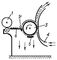 Рис. 2. Схема волокноочистителя (регенератора): 1 — раскатывающий валик; 2 — подающий цилиндр; 3 — барабан с пильными зубьями; 4 — соло; 5 — нож, отбивающий примеси; 6 — столик.