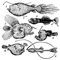 Удильщики: 1 — самка церации с самцом (а); 2 — самка неоцерации с самцом (а); 3 — каулофрина; 4 — меланоцет; 5 — борофрина; 6 — гигантаксис.
