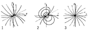 Узел (матем.), один из видов особых точек дифференциального уравнения. Все интегральные кривые, проходящие через точки достаточно малой окрестности такой точки, входят в неё. Рассматривают различные типы У.: а) обычный У. — все интегральные кривые входят в особую точку, касаясь (кроме одной кривой) одного направления (рис., 1); б) вырожденный У. — все без исключения интегральные кривые проходят через особую точку, касаясь одного направления (рис., 2); в) особый У. (дикритический) — всякое направление является направлением входа в начало координат (рис., 3).