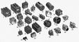 Рис. 1. Набор элементов УСЭППА: 1, 2 — двухвходовой и четырехвходовой усилители; 3 — грубый мощный повторитель; 4, 17, 23 — пневмореле (разных модификаций); 5, 10 — пневомклапаны; 6, 7 — точные повторители; 8, 9 — переменная и постоянная пневмоёмкости; 11 — элемент запоминания непрерывных сигналов; 12 — задатчик; 13, 14 — нерегулируемое и регулируемое пневмосопротивления; 15 — дроссельный сумматор; 16, 22 — сдвоенные обратные клапаны; 18 — элемент запоминания дискретных сигналов; 19, 20 — индикаторы (бленкеры); 21 — конечный выключатель; 24, 25, 26 — пневмокнопки; 27 — пневмотумблер.