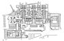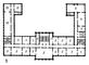 Университет в Ташкенте. Главный учебный корпус. 1970. Архитекторы Е. Е. Калашникова и другие. План 1-го этажа (1 — библиотека, 2 — ректорат, 3 — блок аудиторий, 4 — факультетский корпус, 5 — блок вестибюля и групповых аудиторий, 6 — межвузовский Дом культуры).