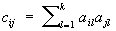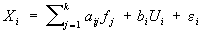 где случайные величины fj суть общие факторы, случайные величины Ui суть факторы, специфические для величин Xi и не коррелированные с fj, а ei; суть случайные ошибки. Предполагается, что k < n задано, случайные величины ei независимы между собой и с величинами fj и Ui и имеют Еei = 0, Dei = s2i. Постоянные коэффициенты aij называются факторными нагрузками (нагрузка i-й переменной на j-й фактор). Значения aij, bi, и s2i считаются неизвестными параметрами, подлежащими оценке. В указанной форме модель Ф. а. отличается некоторой неопределённостью, т.к. n переменных выражаются здесь через n + k других переменных. Однако уравнения (*) заключают в себе гипотезу о ковариационной матрице, которую можно проверить. Например, если факторы fj некоррелированы и cij – элементы матрицы ковариаций между величинами Xi, то из уравнений (*) следует выражение для cij через факторные нагрузки и дисперсии ошибок: