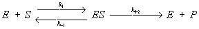 Эта зависимость, установленная экспериментально для многих ферментативных реакций, может быть теоретически выведена, если превращение субстрата в продукт реакции (Р) происходит по механизму образования и распада комплекса между ферментом и субстратом – ES-комплекса: